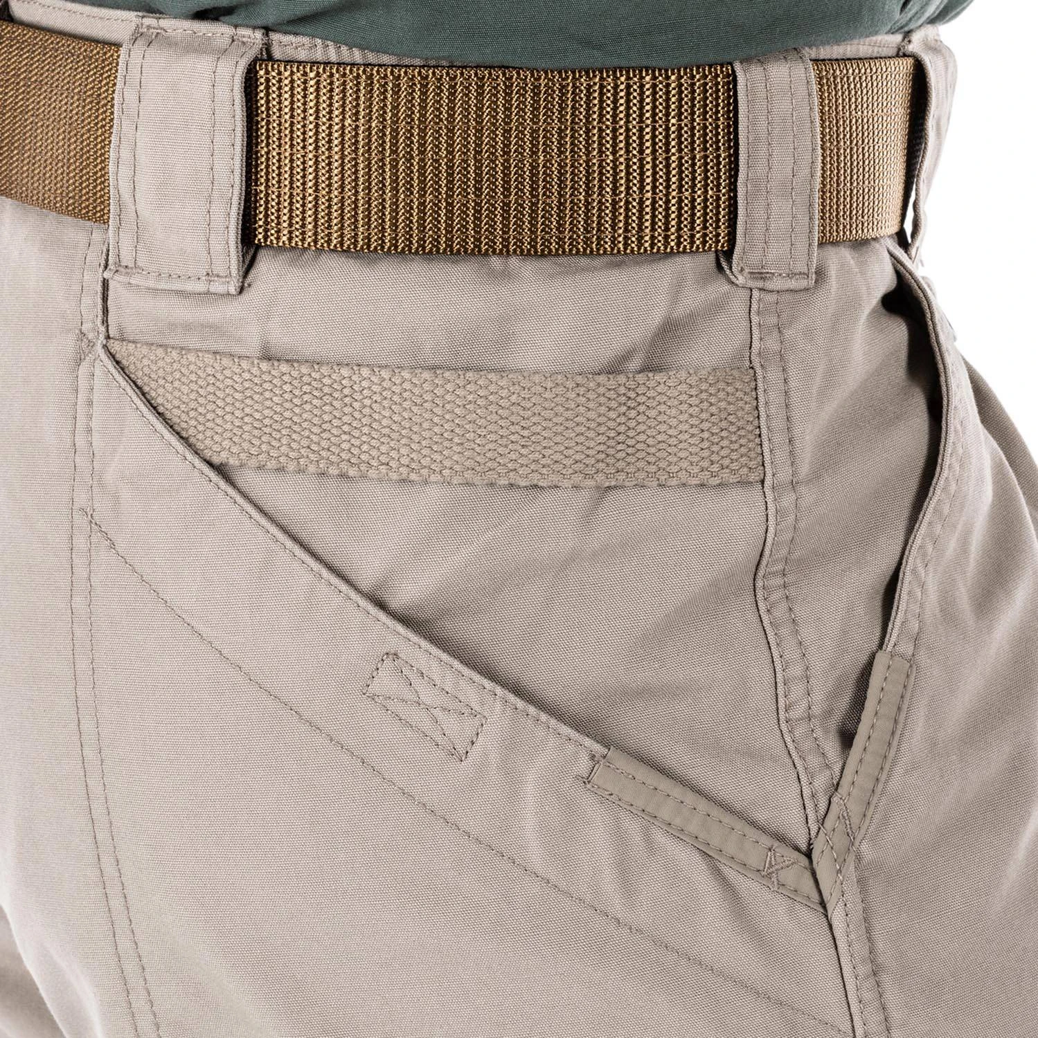 5.11 Tactical Pants feature a carefully planned array of pockets to secure your essential gear and deploy it at a moment’s notice. 5.11’s signature extra-deep, rear slash pockets are perfect for AR-15 mags, a baton or a duty flashlight. Front pockets are strong and roomy. Inverted pleats on the cargo pockets remain flat until needed for a neat, professional appearance. A narrow thigh pocket accommodates a pistol mag, cell phone, tactical light or folding knife.