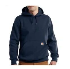 A heavyweight version of the classic hooded sweatshirt, this men’s hoodie stands up to outdoor work in a substantial, water-repellent cotton blend. The jersey-lined hood provides coverage, and the rib-knit cuffs and waist are reinforced with spandex to lock in warmth.