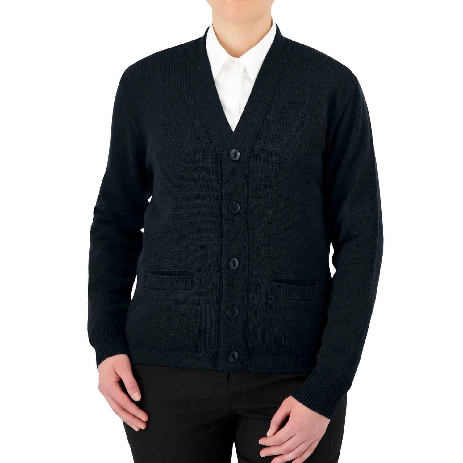 COBMEX® V-Neck Long Sleeve Button Front Cardigan with Pockets, and Hemmed Waistband